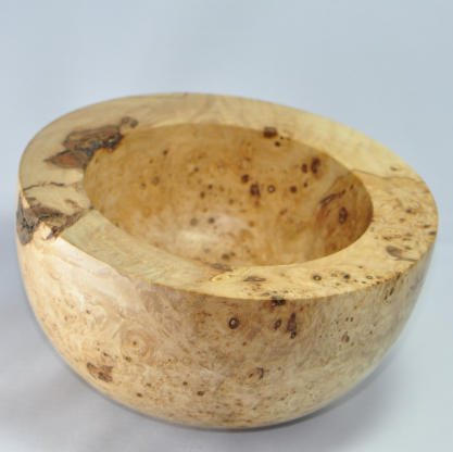Holzschale aus Pappelmaser.Sie wurde 2015 in Bad Fallingbostel auf dem ForumsDrechslertreffen in der Kategorie Gefäße mit dem Dritten Platz ausgezeichnet.